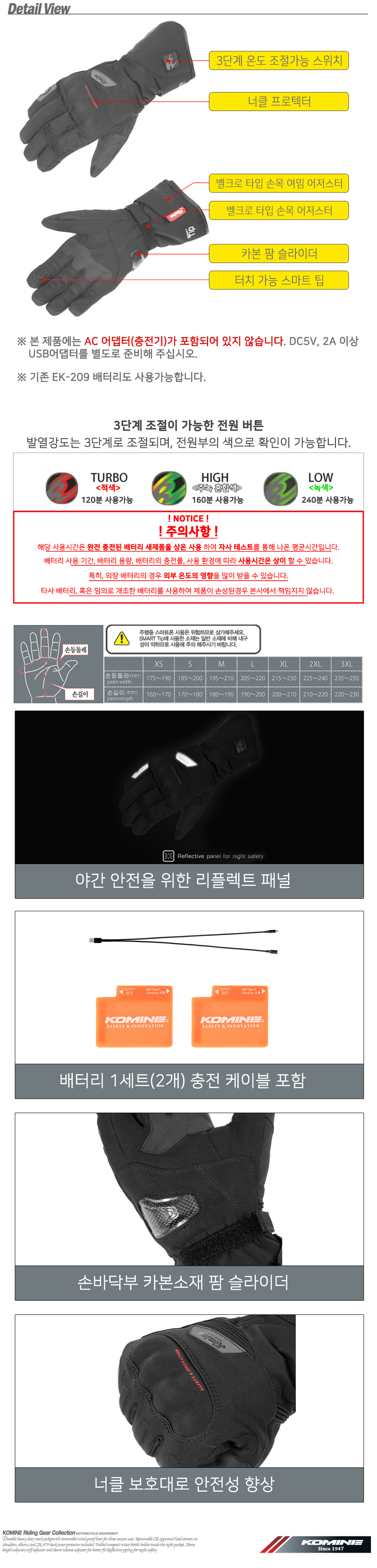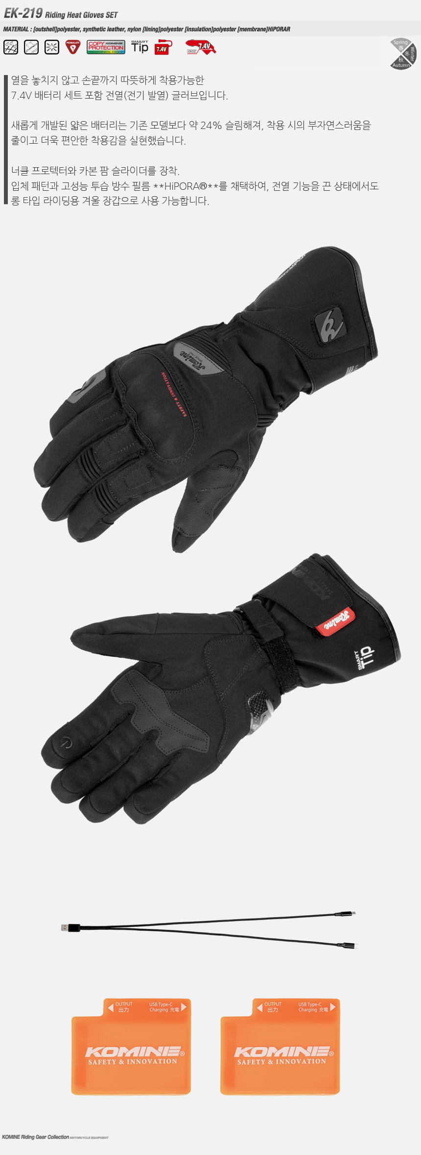 코미네 EK-219 PROTECT MC HEAT GLOVES BLACK 열선 글러브