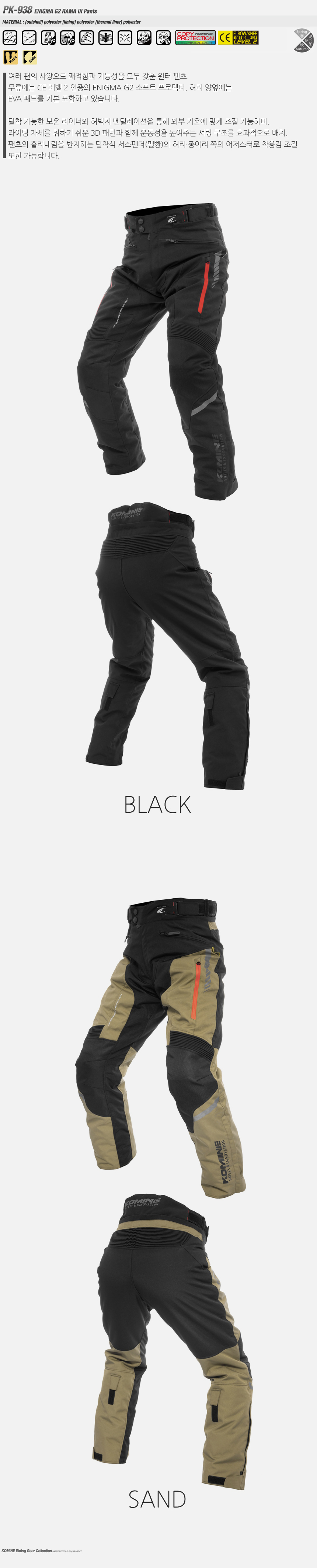 코미네 PK-938 ENIGMA G2 RAMA III PANTS #SAND