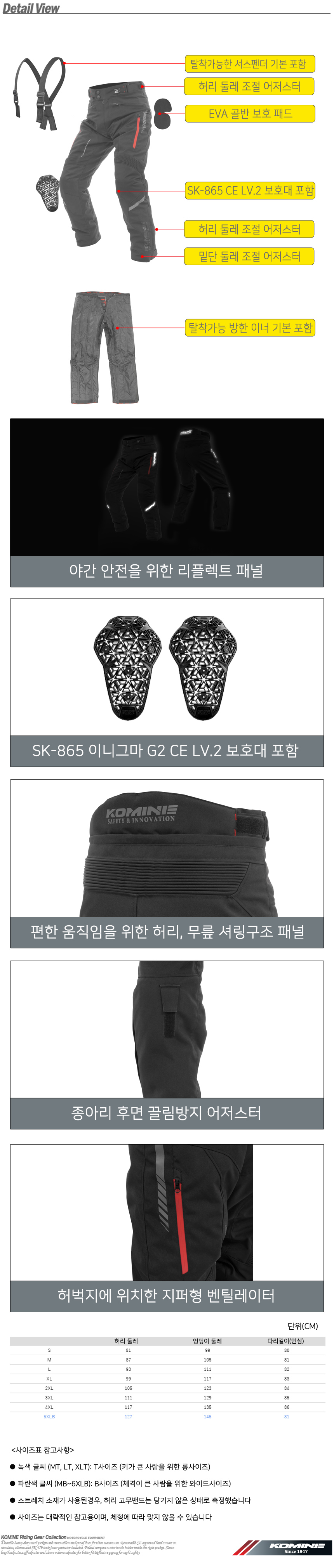 서스펜더(멜빵)와 허리·종아리 쪽의 어저스터로 착용감 조절 또한 가능합니다.