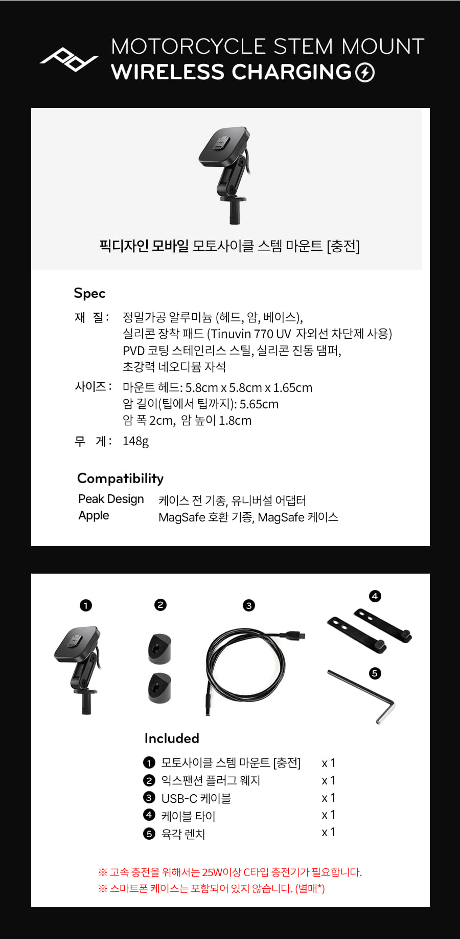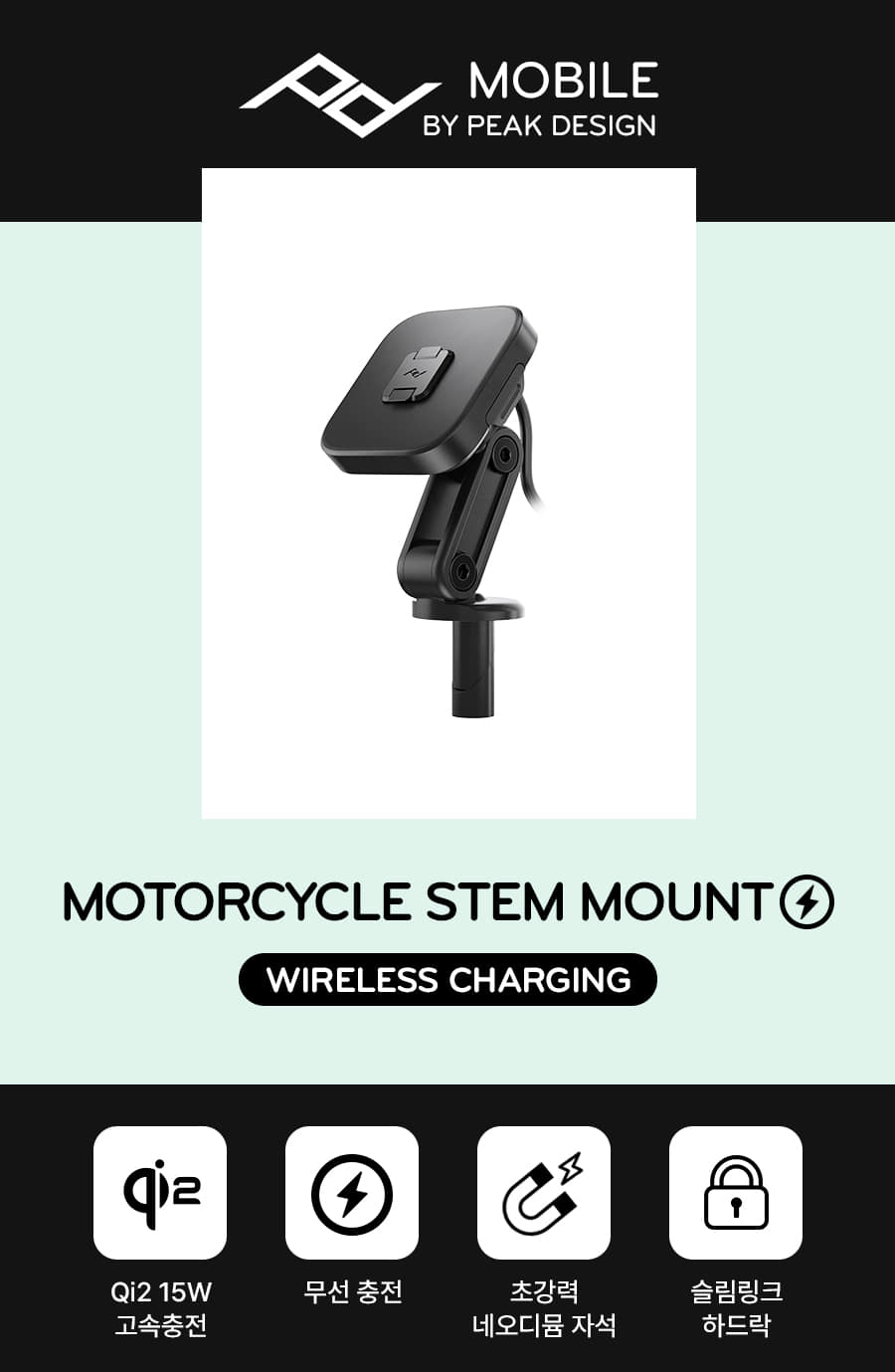 픽디자인 오토바이 거치대 아이폰 전용모토사이클 스템 마운트 (무선충전)