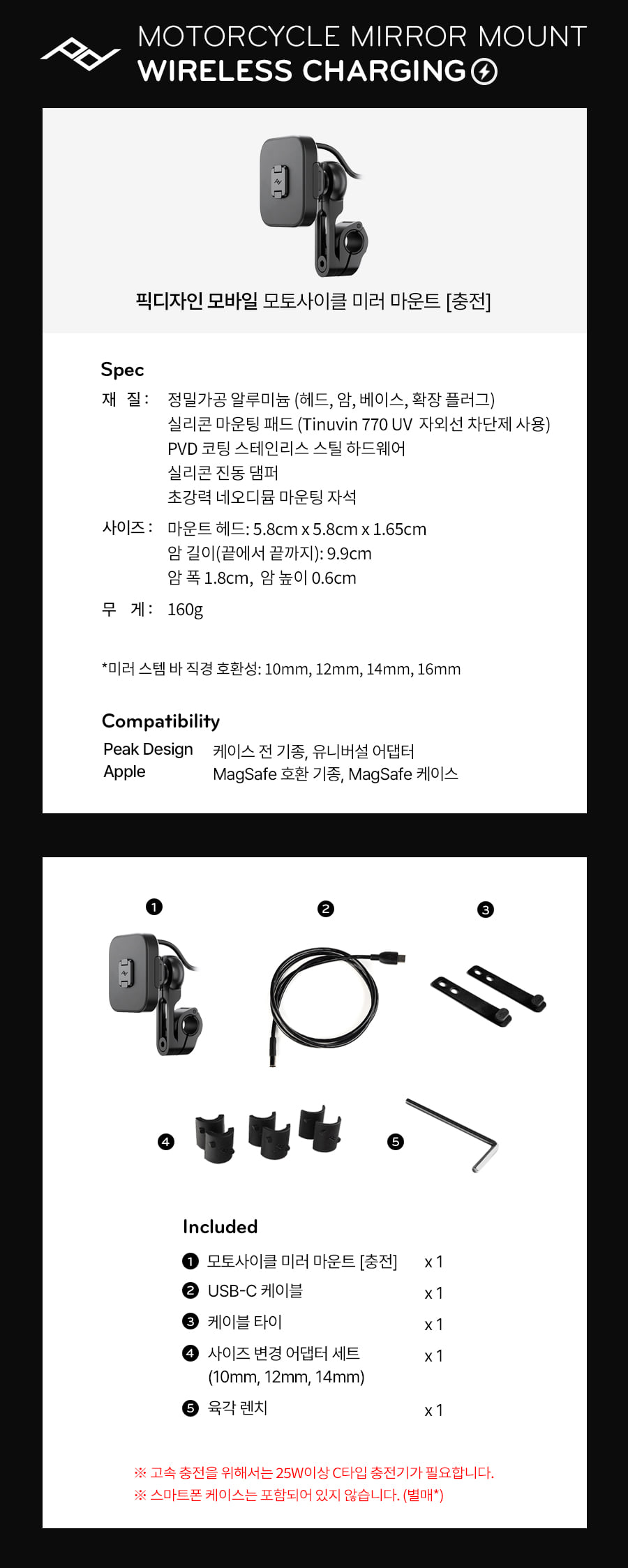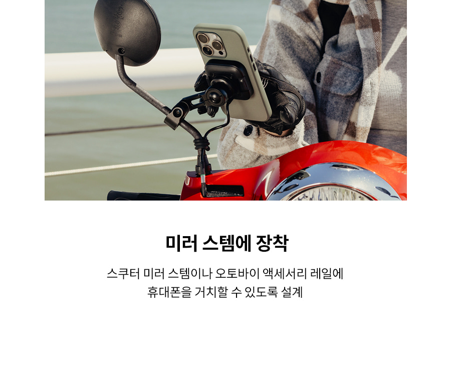 픽디자인 오토바이 거치대 아이폰 전용모토사이클 미러 마운트 (무선충전)