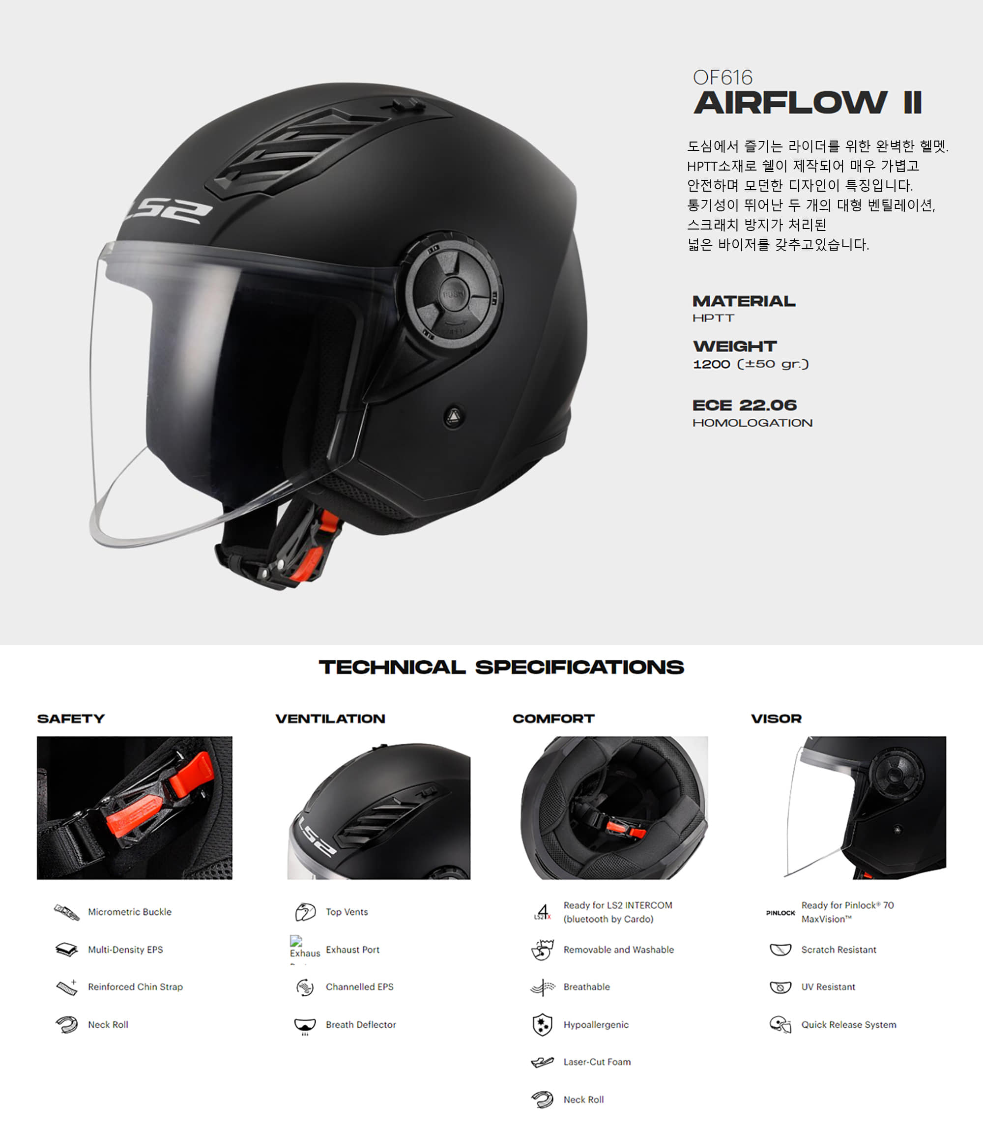 - 인터콤 호환: LS2 인터콤(카르도) 장착 가능