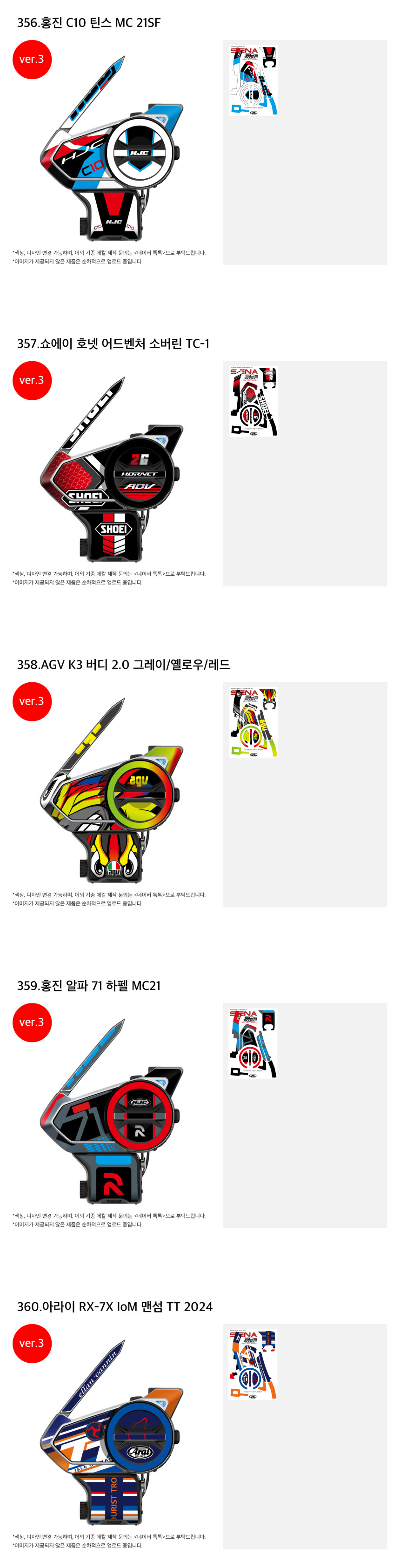 * 세나 50S 하만카돈, 50S, 50C, 30K, 20S, 20S EVO (에보), 10C EVO, 10C PRO, ST-01 (스파이더 01) 디자인 데칼 스티커