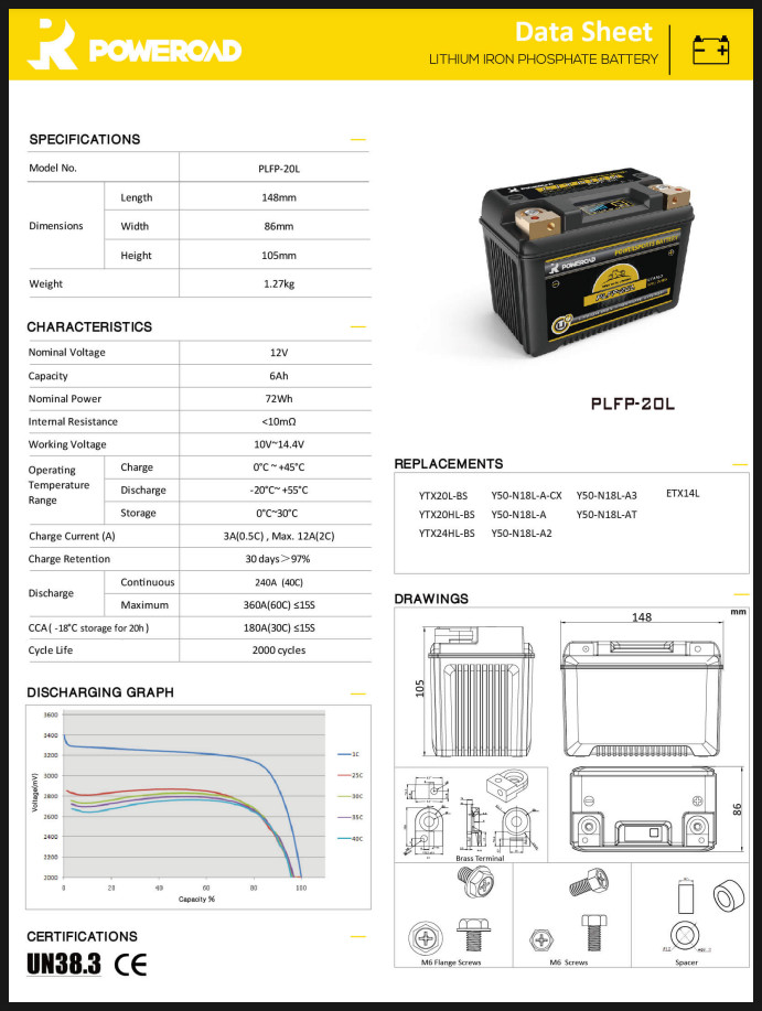 1세대 인산철리튬 (LiFePO4) 파워스포츠 배터리가 출시된 이후 POWEROAD는 수많은 사용자에게 고품질 제품과 서비스를 제공해 왔습니다. POWEROAD는 리튬이온 기술의 선두 주자로서 혁신을 멈추지 않습니다! 연구개발 팀은 최첨단 기술을 채용하여 최신 제품인 새로운 세대의 그래핀 인산철리튬 배터리를 출시했습니다. 그래핀 리튬 배터리는 표준 리튬 이온 배터리보다 더 높은 에너지 밀도를 제공하며 더 빠른 속도로 충전할 수도 있습니다.