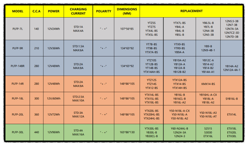 *140/210/280/350/420/560 Cold Cranking Amps*