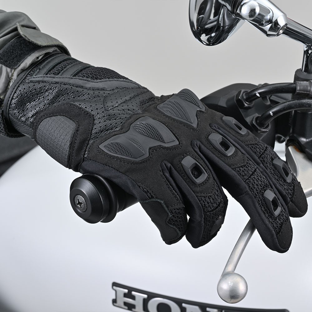 너클(손등 관절) 부분에 분할된 프로텍터를 채용하여 **그립감(쥐는 감촉)**과 안전성을 모두 확보한 라이딩 장갑입니다.