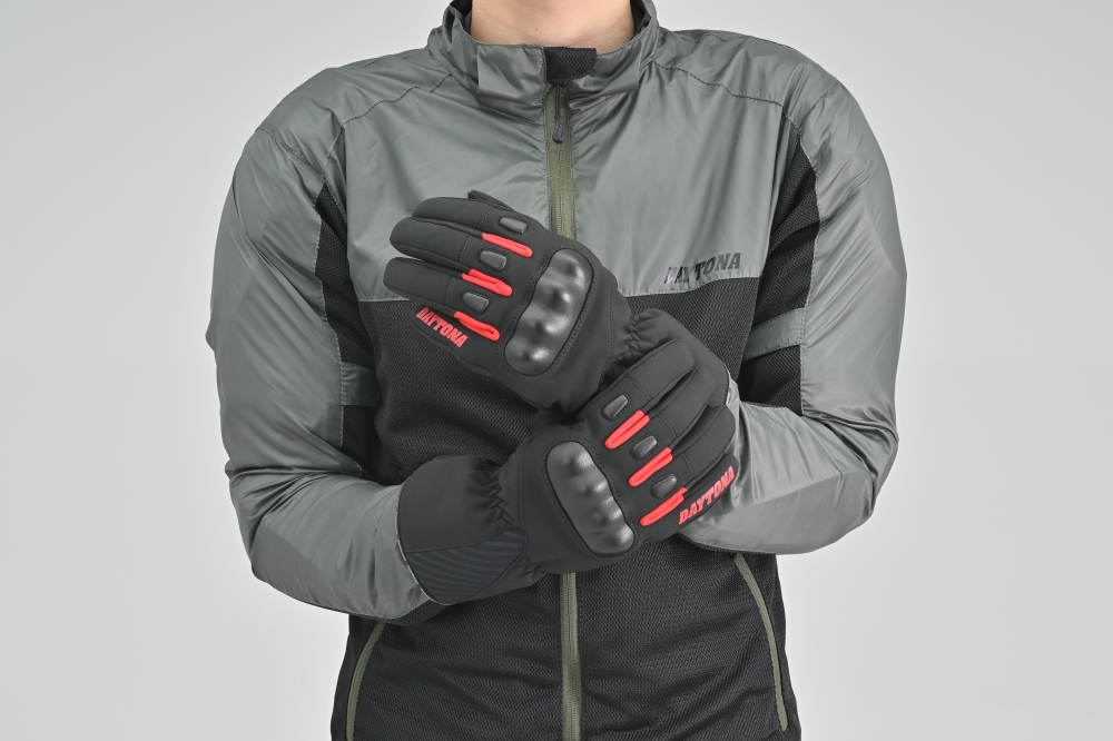 하드 너클 프로텍터가 내장되어 있어 외부 충격으로부터 손을 효과적으로 보호해 주며, 갑작스러운 비나 눈에도 대응할 수 있도록 방풍·방수·투습 기능을 갖춘 필름을 사용했습니다.