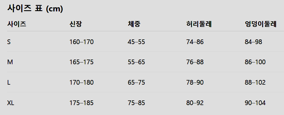 - 소재: 폴리에스터 85% / 폴리우레탄 15%