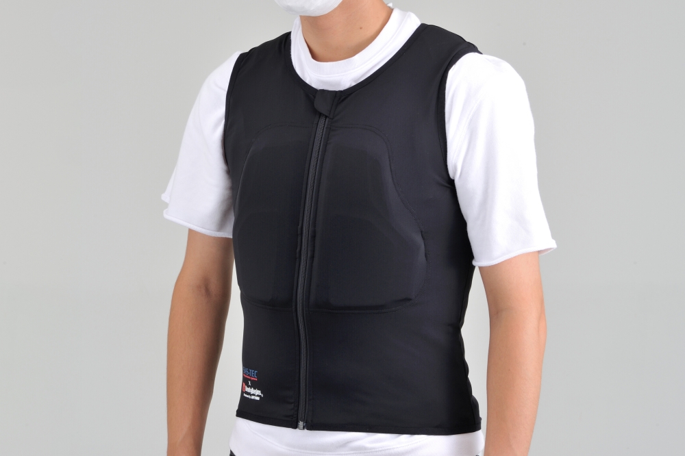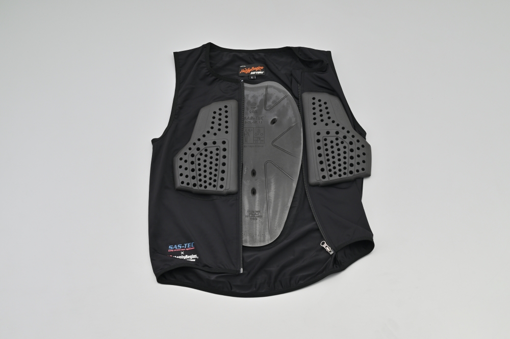충격 시 순간적으로 단단해지는 SAS-TEC 프로텍터를 장착한 슬림핏 이너 프로텍터 베스트입니다.