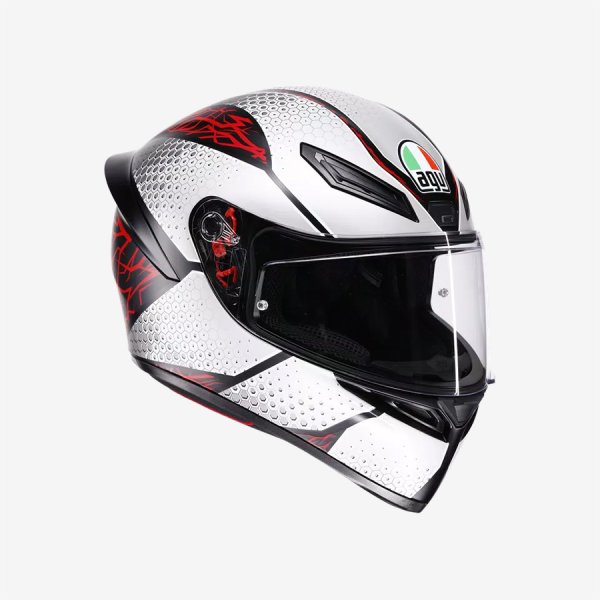 헬멧의 프로파일은 쇄골에 충격이 가해질 가능성을 최소화하도록 설계되었으며, 고품질의 매우 안전한 고정 시스템인 더블 D 클로저는 트랙에서 사용되는 것과 동일한 유형의 고정 방식입니다. AGV는 K1 S에도 레이싱 표준을 도입했습니다.
