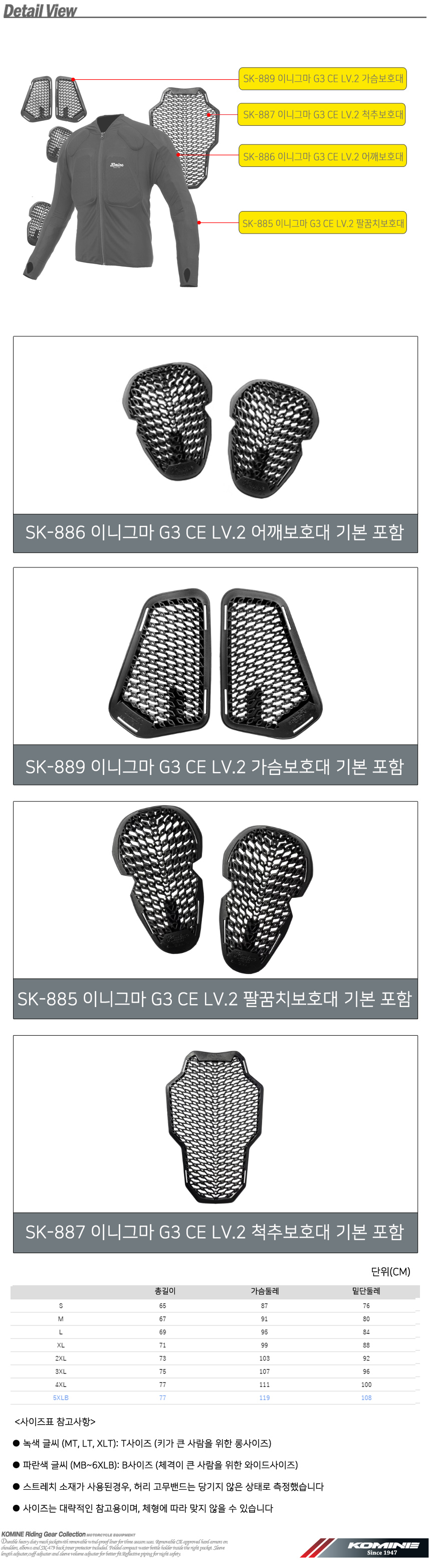 코미네 SK-891 ENIGMA G3 이너 상체 보호대