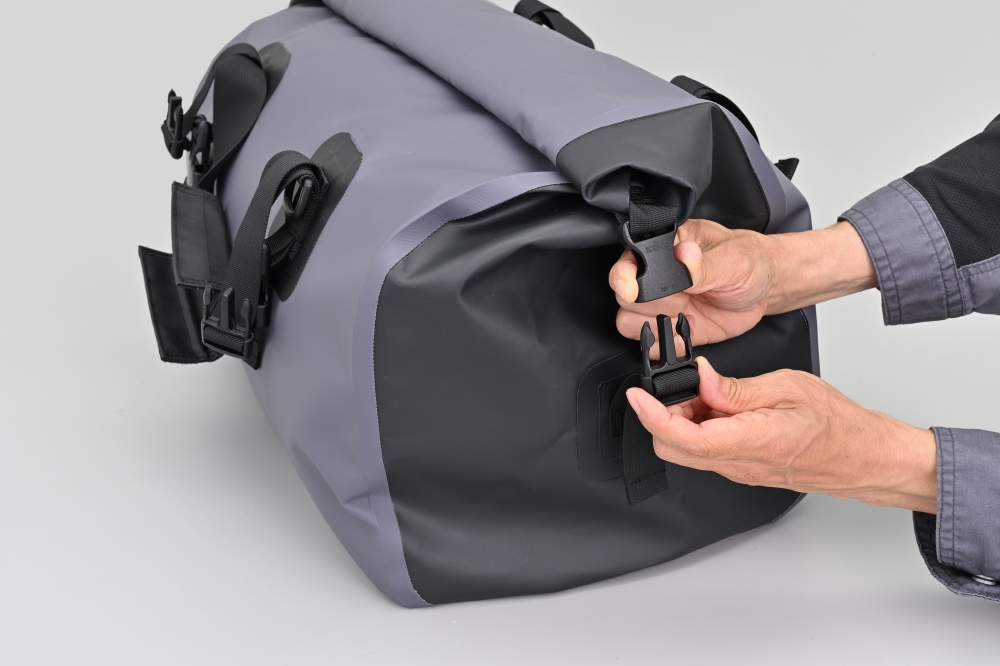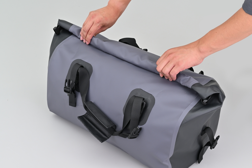 출입구는 방수 성능이 뛰어난 롤 톱 구조와 심리스 고주파 열압착 방식으로 제작되어 물의 침입을 확실히 차단합니다.