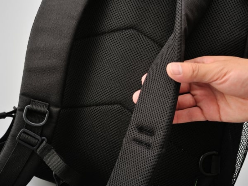 - 간이 방수 기능이 있는 등판 포켓,