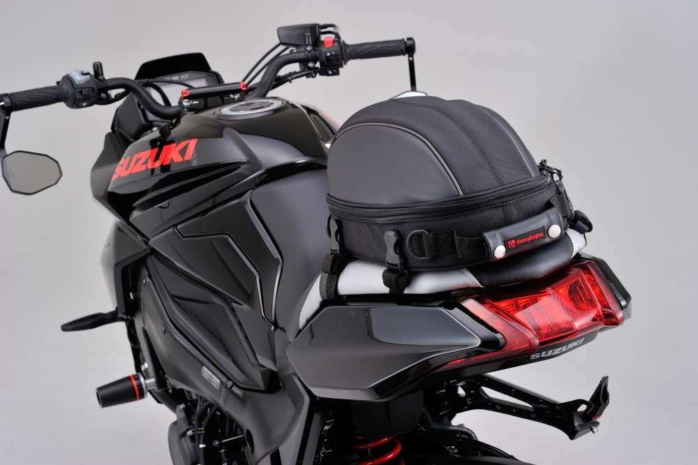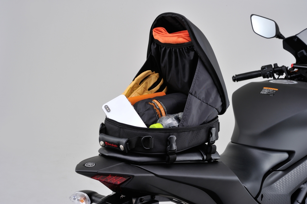 수납 이미지. 500mℓ 페트병, 스마트폰, 모바일 배터리, 지갑, 레인슈트, 투어링 맵(A5사이즈)