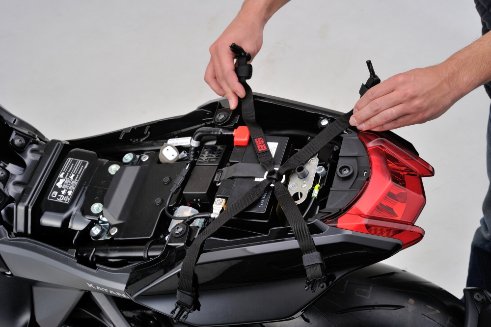 장착 이미지 : ① 탠덤 시트를 제거하고 이지 링 벨트를 놓고