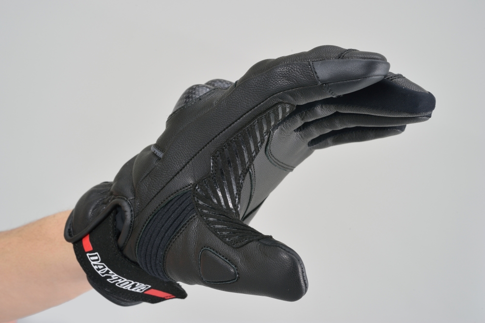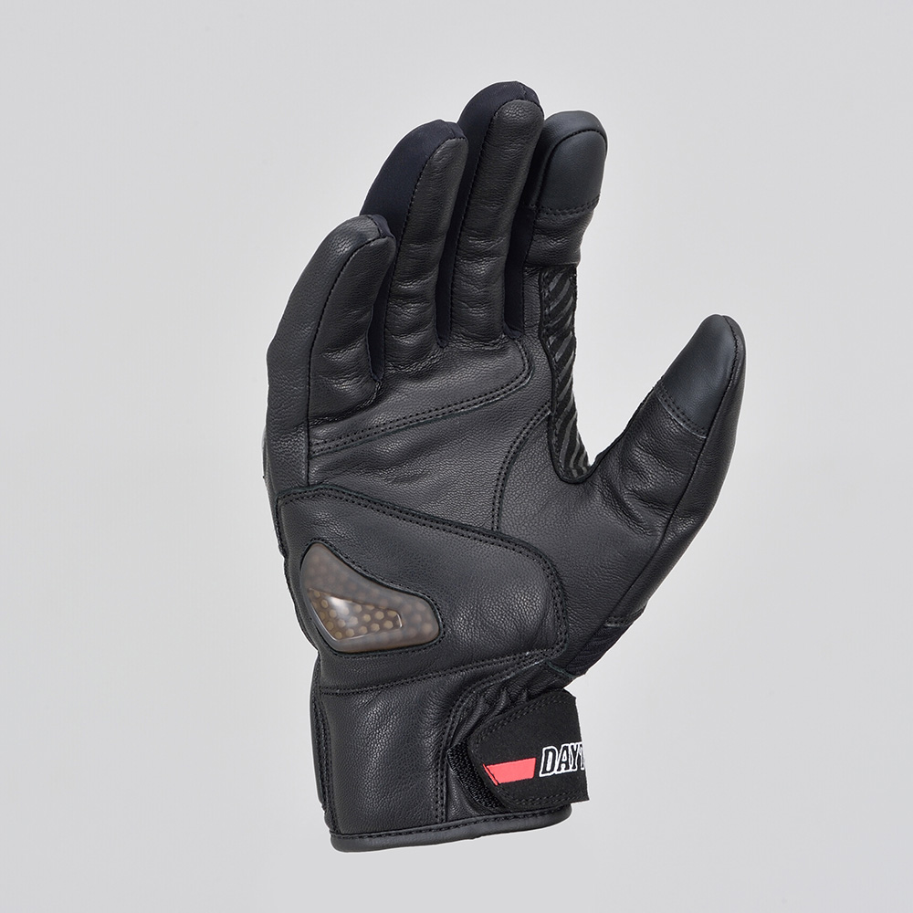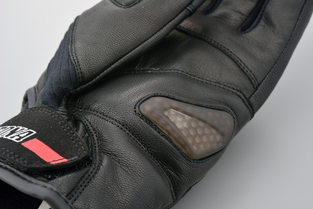 손등과 손바닥 곳곳에 고급 야기 가죽(염소가죽)을 사용해 내구성과 보호 성능을 강화했으며, 다양한 위치에 프로텍터를 장착해 라이딩 중 안전성을 높였습니다.