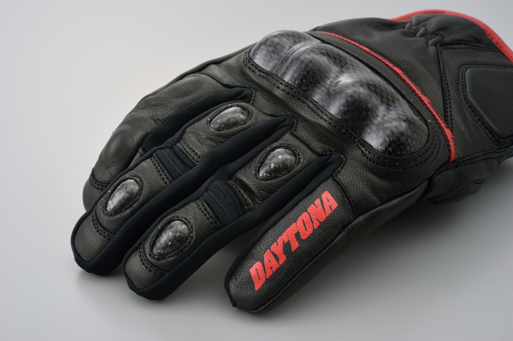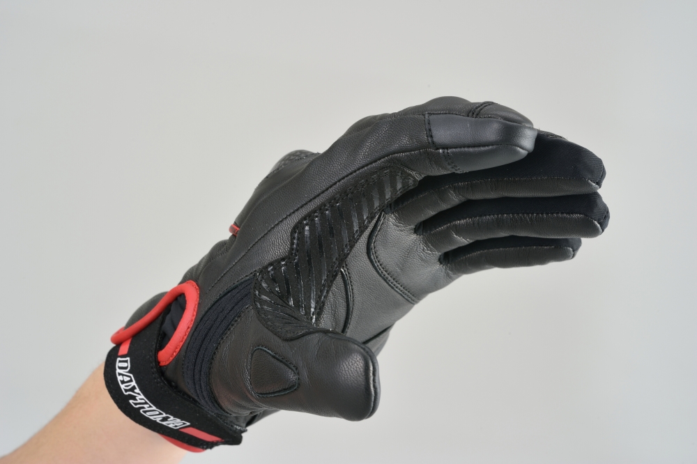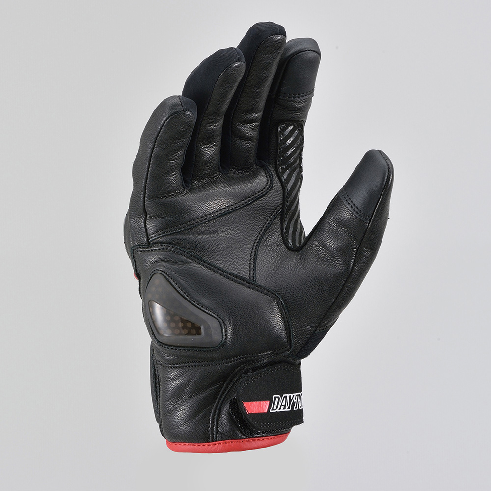 손등과 손바닥 곳곳에 고급 야기 가죽(염소가죽)을 사용해 내구성과 보호 성능을 강화했으며, 다양한 위치에 프로텍터를 장착해 라이딩 중 안전성을 높였습니다.