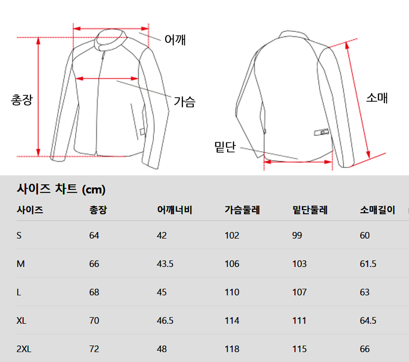 - 프로텍터: 기본 착용 시 부드럽게 밀착되며, 충격 시 순간적으로 경화하는 고안전성 CE 레벨 1 프로텍터 (가슴 / 어깨 / 팔꿈치 / 등 포함)