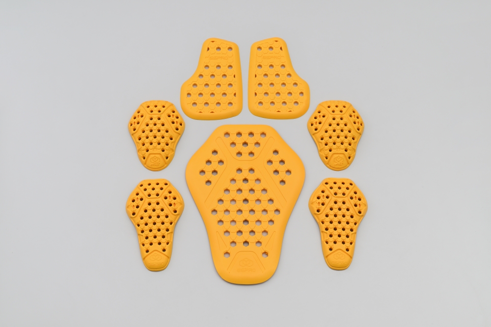 - 프로텍터: 착용 시 부드럽게 밀착되지만 충격 시 순간적으로 경화되는 고안전성 CE 레벨 1 프로텍터 (가슴 / 어깨 / 팔꿈치 / 등 기본 포함)