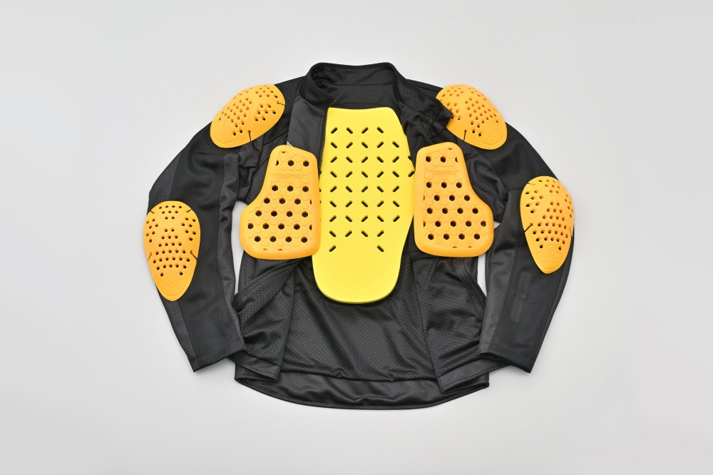 어깨·가슴·팔꿈치에는 CE 레벨 1 프로텍터가 기본 장착되어 있으며, 등에는 우레탄 폼 프로텍터가 포함되어 안전성을 보강했습니다.