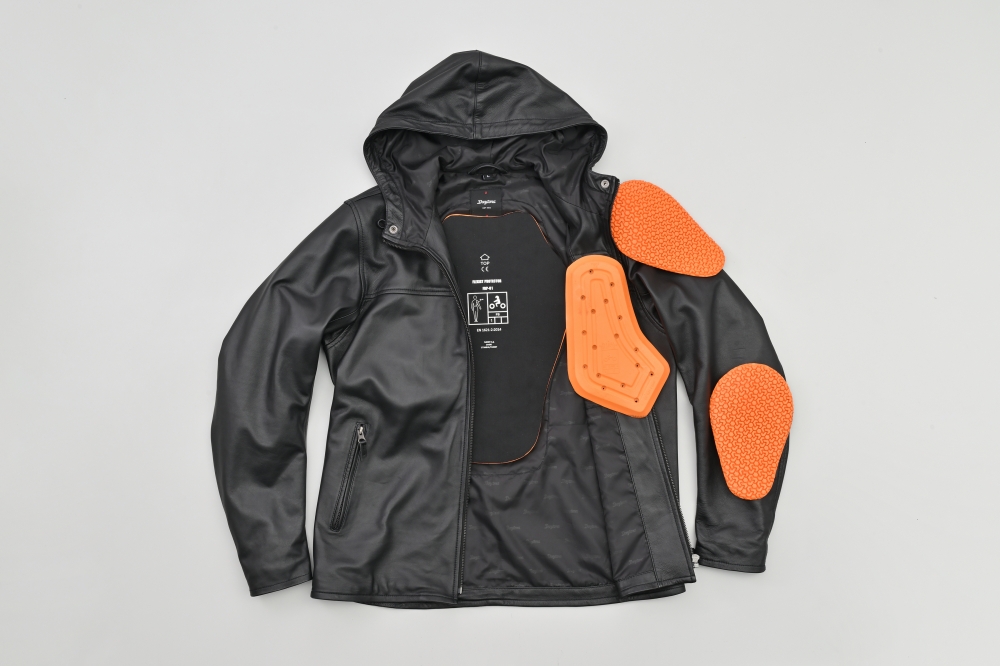 고급 양가죽의 부드럽고 유연한 착용감에 캐주얼한 후디 스타일을 더한 라이딩용 가죽 재킷입니다.