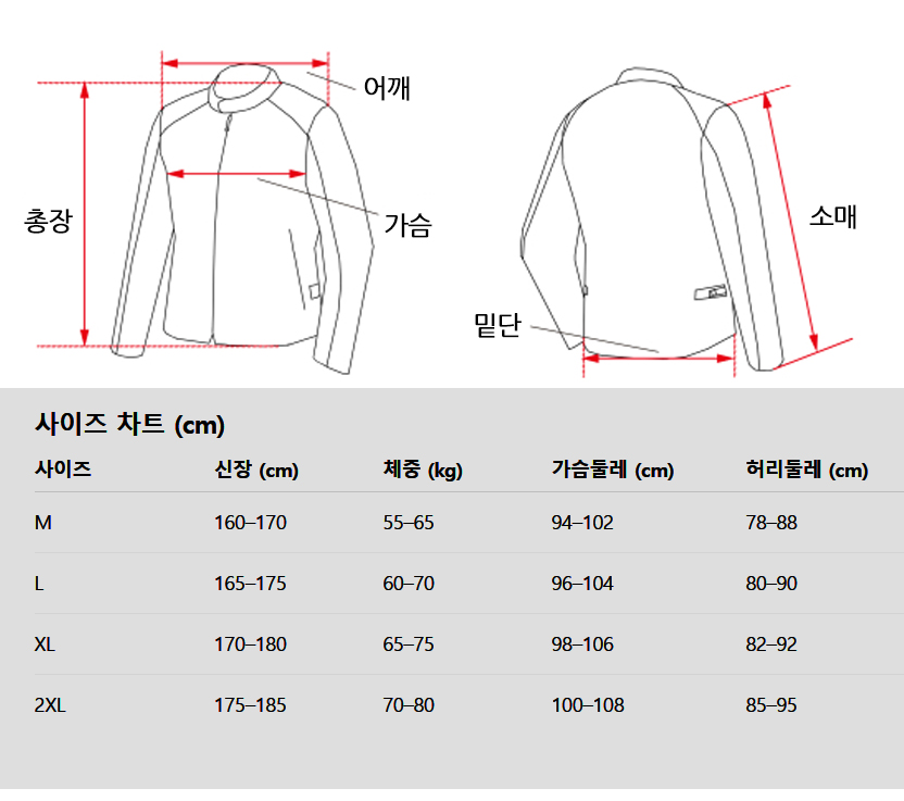 ※ 표기된 치수는 제품 실측 기준입니다. 착용자의 체형에 따라 착용감에는 차이가 있을 수 있습니다.