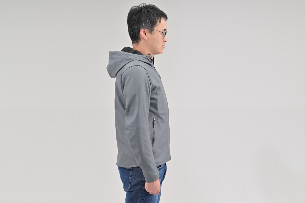 라이딩 중 바람에 후드가 펄럭이지 않도록 스냅 버튼 고정 방식을 채택해 기능성과 스타일을 모두 잡았습니다.