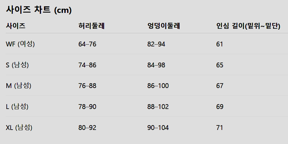 - 허리와 엉덩이 수치는 제품 실측이 아닙니다. 사이즈는 기준치로 참고 바랍니다.